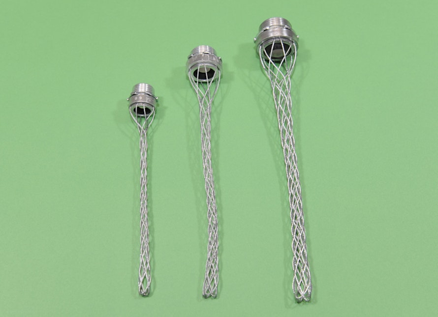 These grips are made with a single-weave galvanized steel wire mesh and feature aluminum fittings with NPT threads and a lock nut. They also include a gasket that provides an environmental seal against dust, filings and other foreign material. This product is intended for indoor applications in dry locations only.